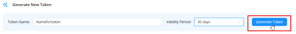 1. Select the period which this token will be valid for (7 days, 30 days, 60 days, etc.);